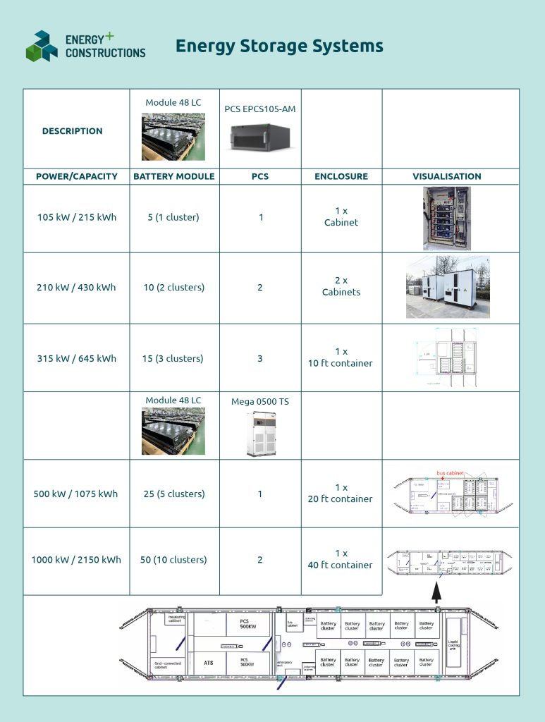 The market for energy storage systems is expected to triple by the year 2030. To meet this demand, E+C offers industrial energy storage systems from 215 kWh – 6.7 MWh in single module containers.
